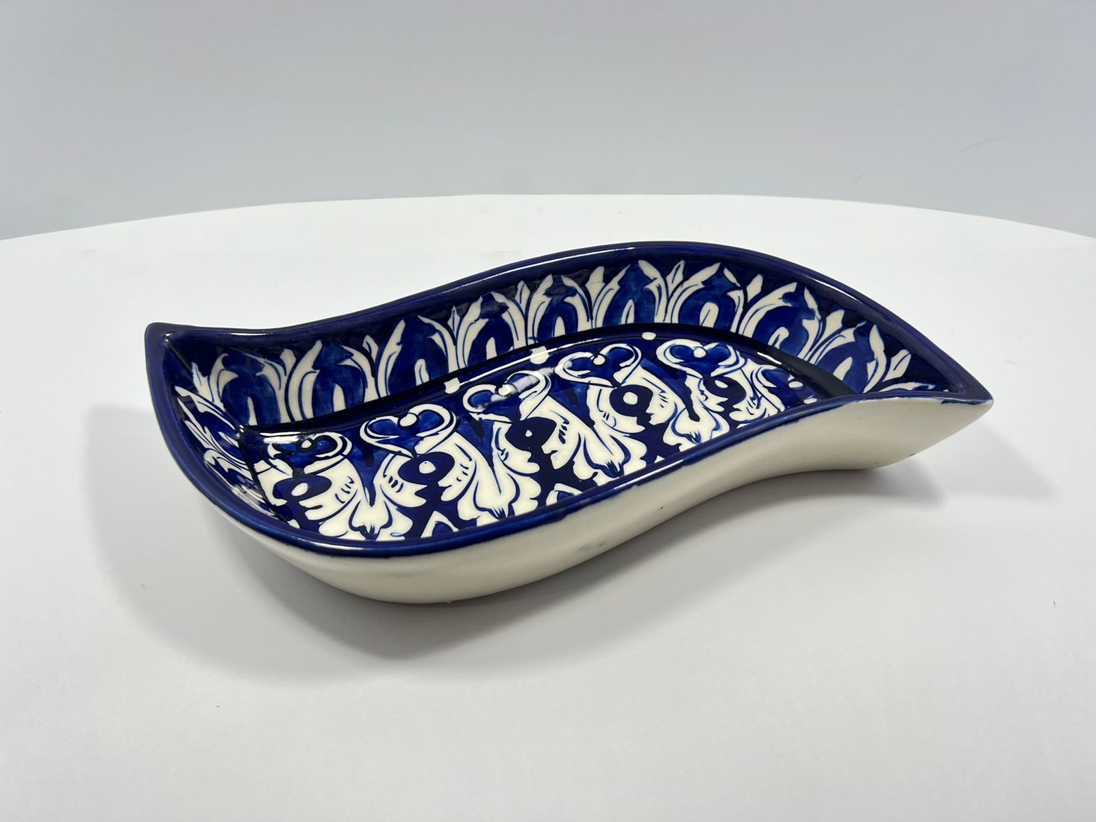 Bring a unique flair to your serveware and décor with our Blue Pottery Curved Trays, where timeless craftsmanship meets elegant design. Hand-molded and painted by Jaipur artisans, each tray is a testament to the beauty of traditional blue pottery—with a soft curved shape that adds a modern, artistic twist.