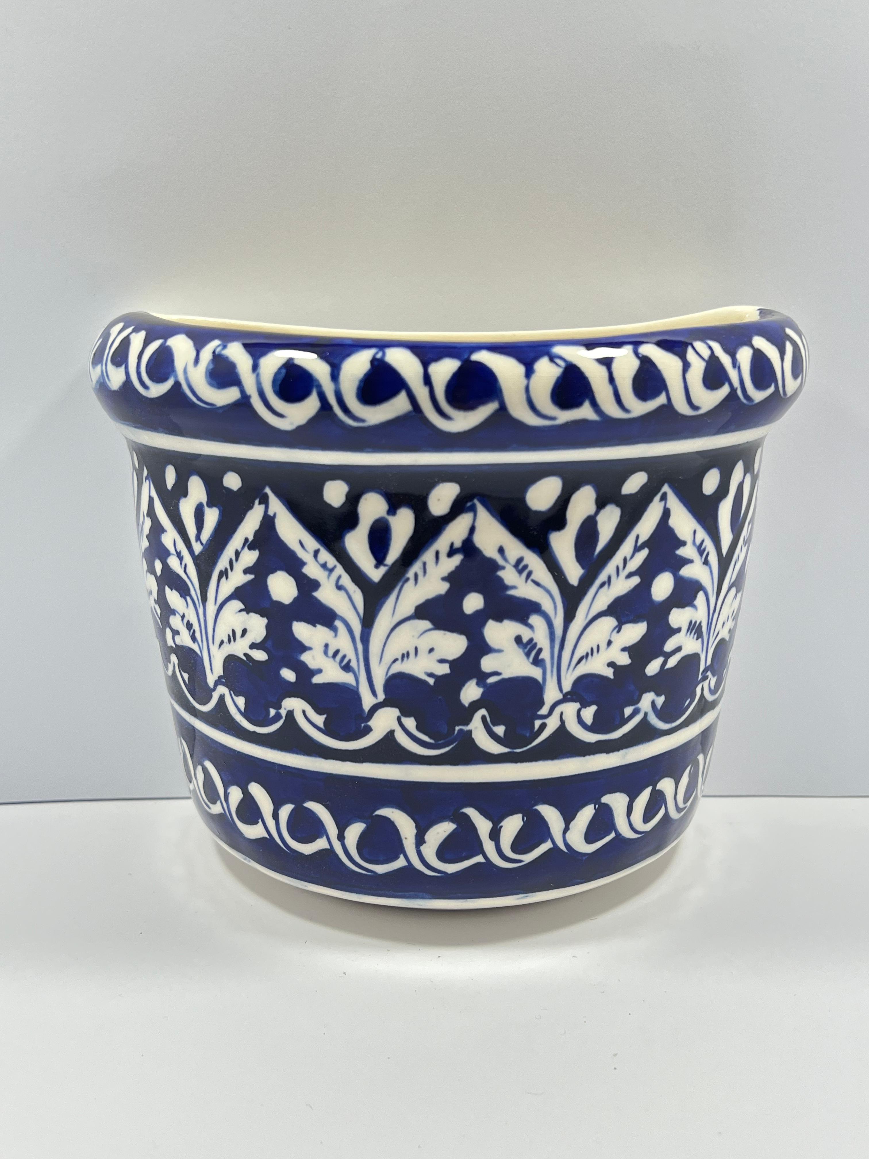 Bring Artful Elegance to your space with our Blue Pottery Wall Planter. Transform any wall inro a vibrant statement with our handcrafted blue pottery wall planter. Featuring rich, luminous glazes and intricate detailing, this piece blends timeless artistry with everyday functionality. Perfect for showcasing trailing plants, succulents or herbs, its sturdy ceramic construction ensures lasting beauty indoors or out. Weather accenting a cozy balcony, brightening your kitchen, or adding charm to a living room gallery wall, this planter brings a refreshing burst of color and sophistication to your décor.