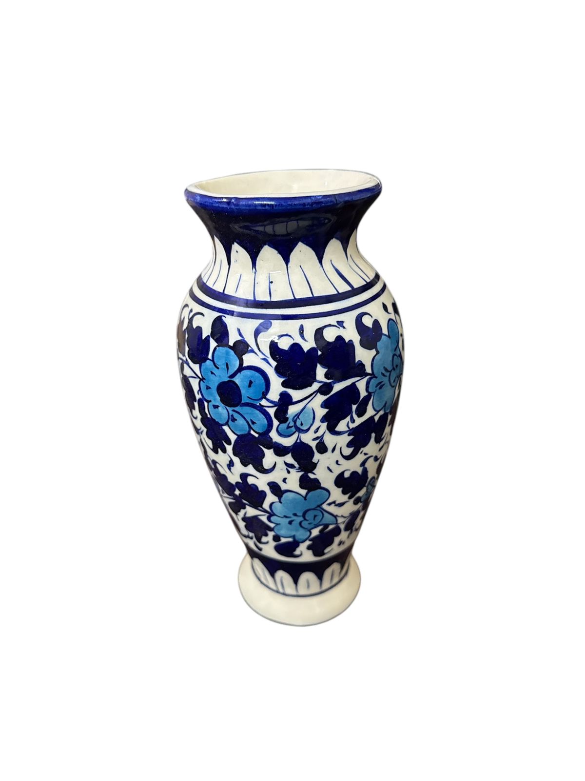 This handcrafted blue pottery flower vase offers a unique blend of artisanal craftsmanship and timeless design. Each piece is carefully shaped and glazed, resulting in a durable and visually striking vase. Its rich blue hues enhance floral displays, making it an ideal centerpiece for any room. Perfect for collectors and those who appreciate fine pottery, this vase adds both functional beauty and cultural charm to your decor.