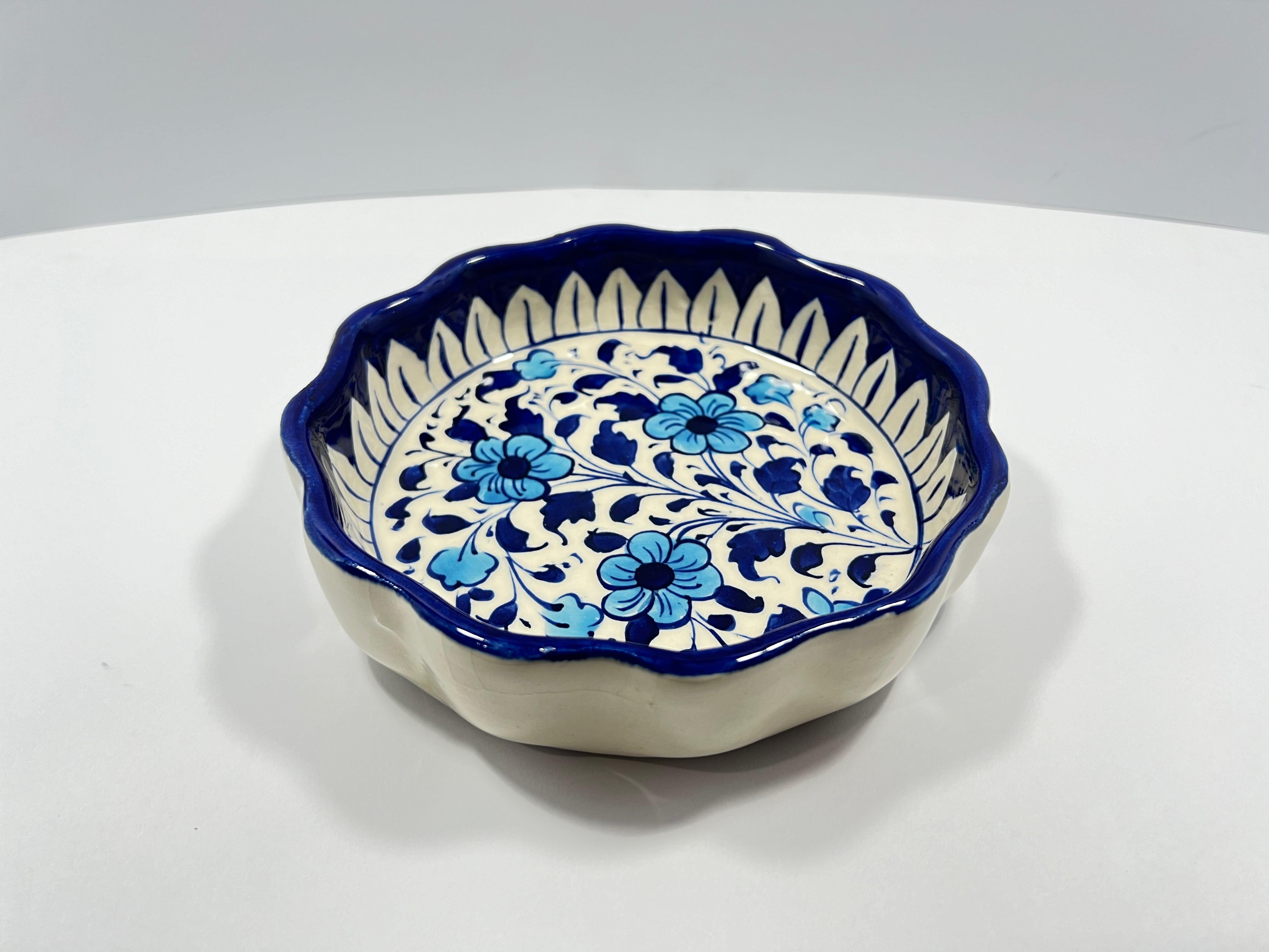 Elevate your entertaining experience with this stunning Blue Pottery deep dish, a perfect fusion of arts and function. Handcrafted by Skilled artisans, it showcases intricate floral and geometric designs in vibrant cobalt blue, making it a captivating centerpiece for any table. Ideal for serving snacks, drinks, or desserts. Durable yet decorative, it’s a must-have for those who love to serve with style.